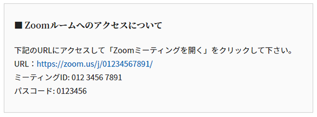 ログインした状態でアクセスすると、Zoomルームへのアクセス方法が記載されています。