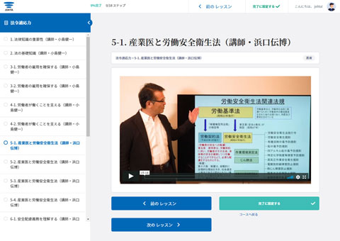 理事長の浜口伝博が提唱する「産業医力として必要な7つの力」や、当会に賛同する産業医、協力組織により作成された学習用の動画コンテンツをオンラインで学ぶことができます。